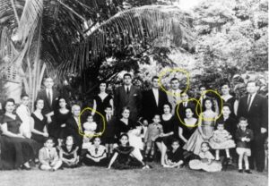 I was born in May 1955, and I am the baby sitting on my grandfather’s lap in the left circle. The three on the right circles show my Uncle Miguel Suarez, my Aunt Maria Ana Simpson, and my first cousin Maria Cristina Suarez.